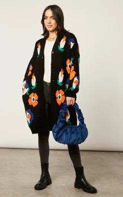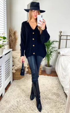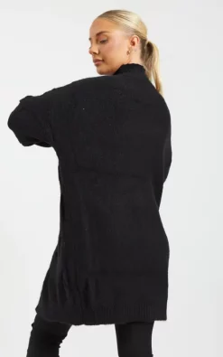 Promo ???? Pretty Moi Black Oversized Cable Knit Drop Shoulder Cardigan One Size Fit (10 16) ⭐