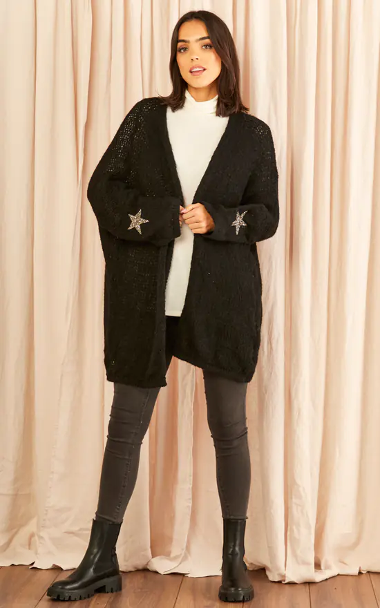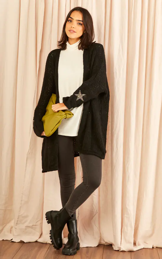 Cardigans are the ultimate Fall staple. They are warm, they are cosy, and go so well when layered over a long sleeve top, a midi leather skirt and high ankle boots. Take this cardigan with a star cuff print with you when going a lunch date with family.