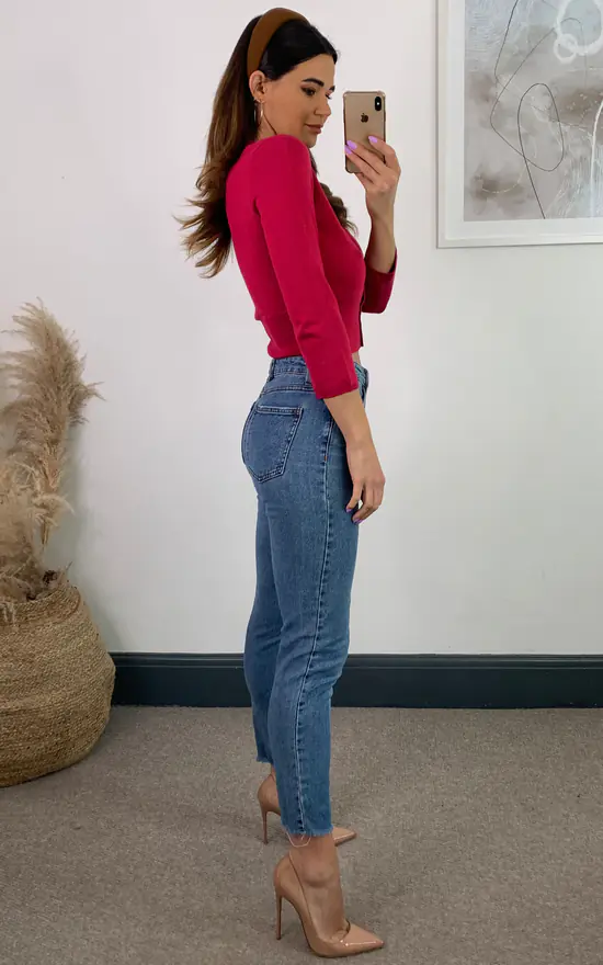 Beautiful wine coloured tailored cardigan to brighten up any outfit wear with jeans for a casual look or wear with