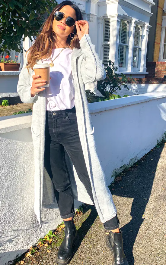 Longline knitted cardigan with pockets and hood detail,made in a gorgeous textured knit fabric,takes your look to a new level,perfect when worn over other casual styles.