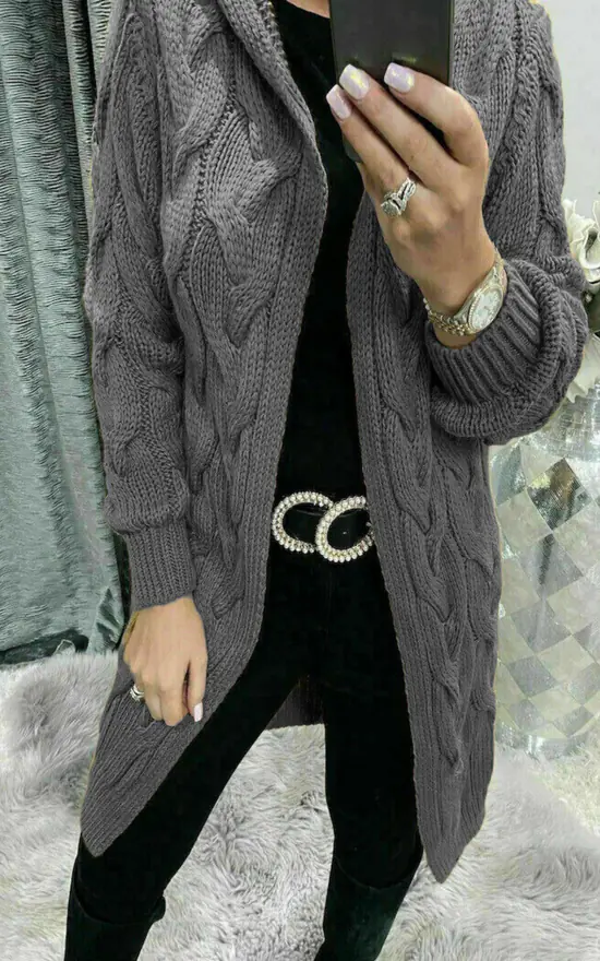Cute hooded long line cardigan in Charcoal Grey