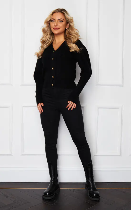 Our Skylar cardigan is the perfect piece to add to your knitwear collection this season. Featuring button detailing to the front, slight puffed shoulders and a fitted long sleeve. This is a great cosy option for layering over casual or dressy looks.