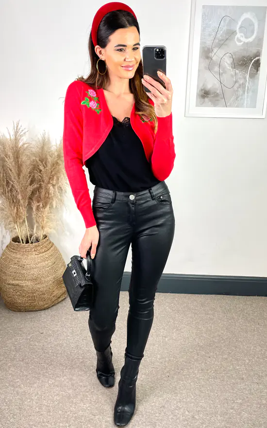 We are bringing to you our AW20 collection of shrugs, ready to dress up with our lavish choices of dresses. The design features an embellished rose in pink, on the chest of the shrug. What a divine knitwear to wear over your favourite dress. The fabric has a lovely soft feel, complementing the love for all our knitwear collections. Why not check out the other choices of colours we have available this winter including grey and black.