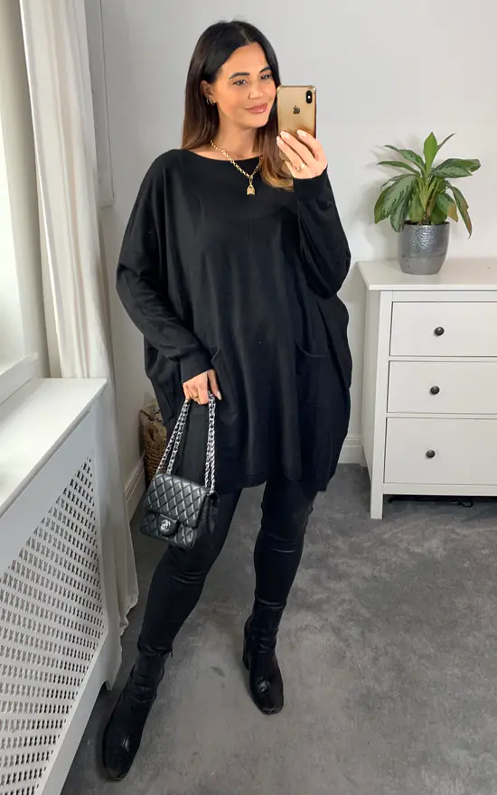 Oversized Long Sleeves Crew Neck Jumper with Button Detailed Back in Black is designed for those who wants comfort and elegance at the same time. Beautifully designed details catches the eyes on you!