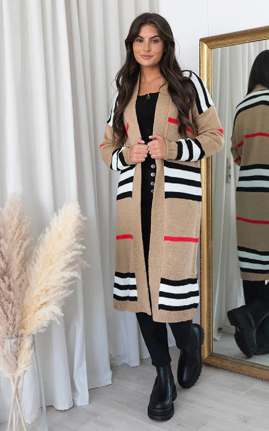 Introducing the Alyssa Long Length Knitted Check Cardigan! This gorgeous cardigan is perfect for chilly days and nights. Made from soft, high-quality material, it is sure to keep you warm and comfortable all day long. It features a beautiful check pattern with cosy and stylish look. Whether you’re headed to the office or out for drinks with friends, this cardigan is a must-have this season!
