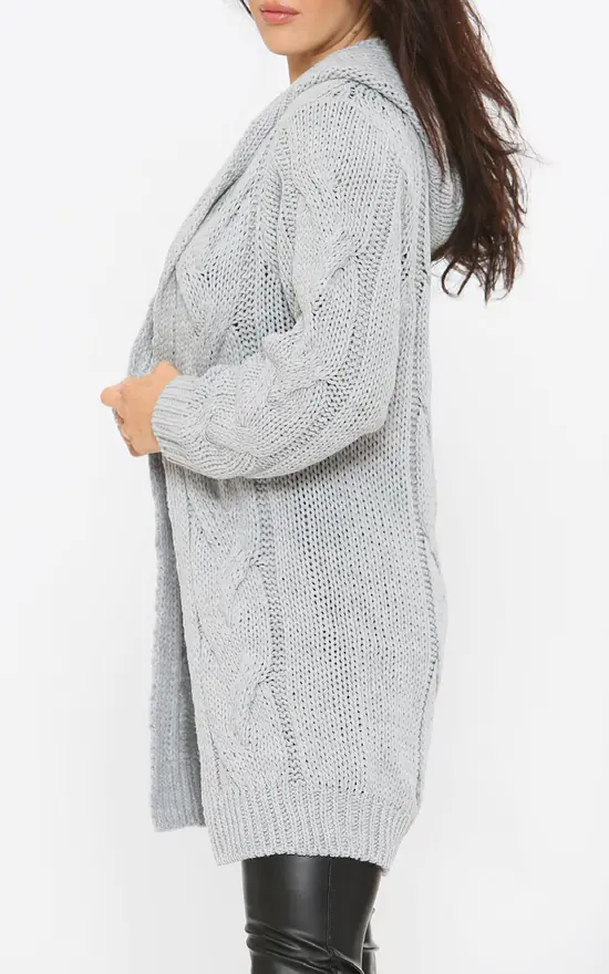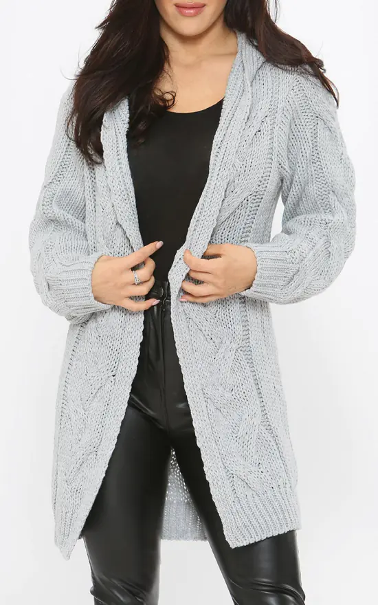 Keep warm this winter with the Lexi Cable Knit Long Line Hooded Cardigan. This comfortable and stylish cardigan is perfect for layering over your favorite outfits. The cable knit design adds a touch of texture and interest, while the longline silhouette flatters your figure. The hood keeps you cozy and protected from the cold, making this cardigan a must-have for chilly days. Pair it with jeans and a tee for a casual look, or dress it up with a corduroy skirt and booties. No matter how you wear it, you’ll look and feel amazing in the Lexi Cable Knit Long Line Hooded Cardigan.