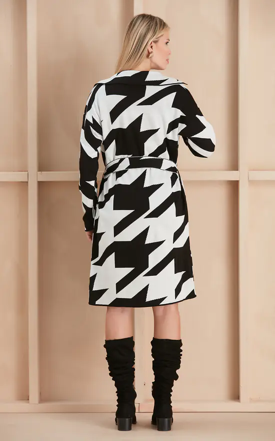 -Wrap, Longline, Midi, Cardigan, goose foot print, checked print, black/white, long sleeve, casual, coat