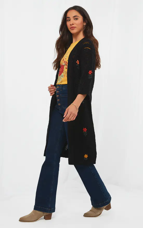 You’ll find this pretty pointelle cardigan so easy to wear. Since it’s a longline style with an open fit, just slip it on to keep nice and comfy, and you can still show off your favourite blouse or dress underneath. Peppered with gorgeous embroidery, it’s a dainty, delicate piece that’ll leave you feeling confident and cosy.