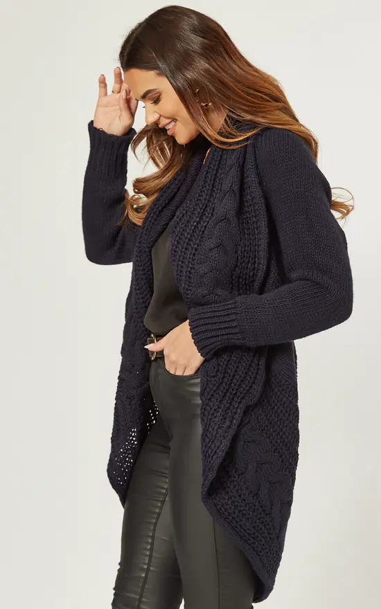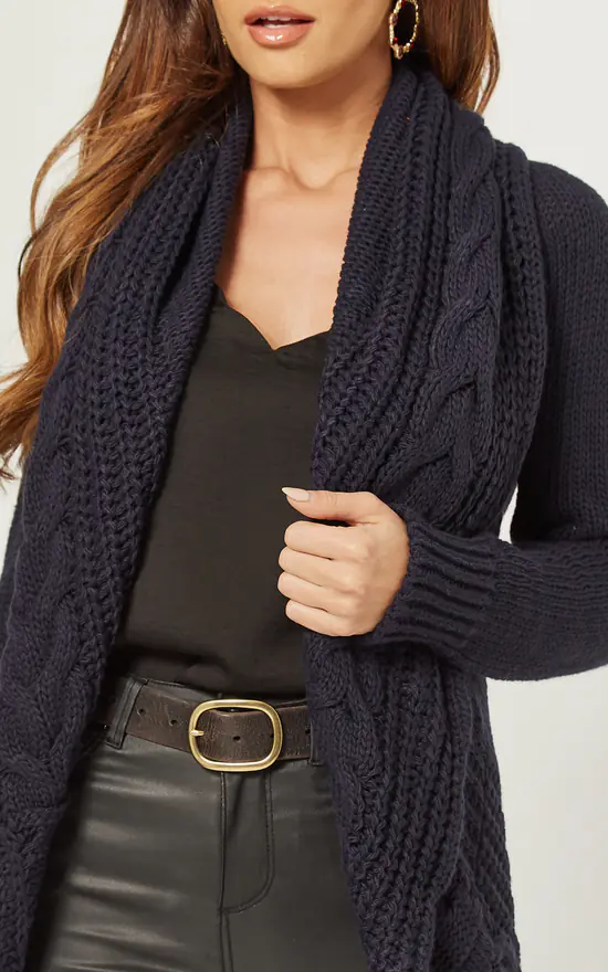Keep yourself warm all autumn and winter in this thick, chunky cardigan in Navy.