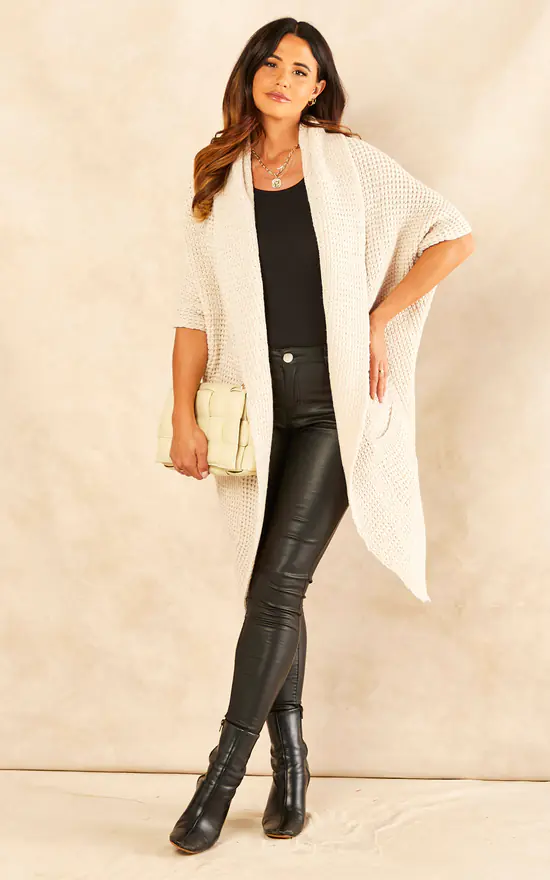 Warm and cute in a neutral cream colour that can be worn with jeans and a nice top or perfect to wrap around you over a dress to keep you snug.