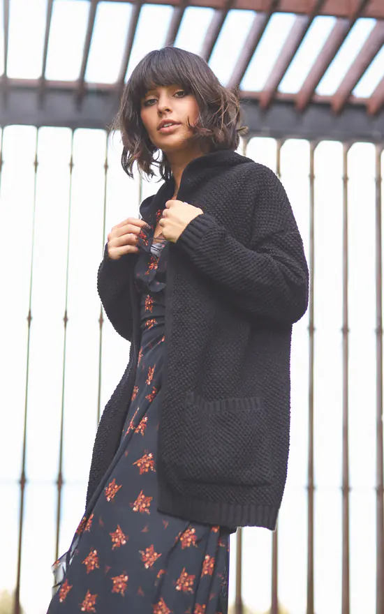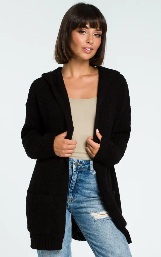Open front with pockets and a hood at the back. This waffle cardigan goes in few trendy colors for you to choose.
