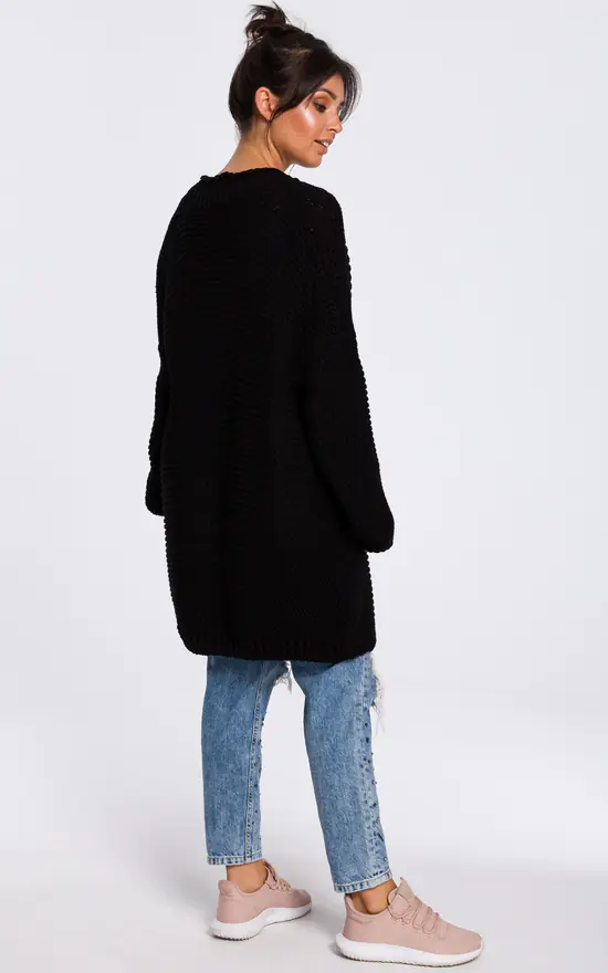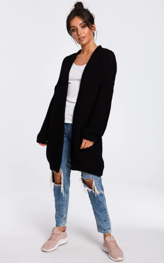 A modern look is guaranteed with this rounded hem oversized cardigan made from thick rice knit.
