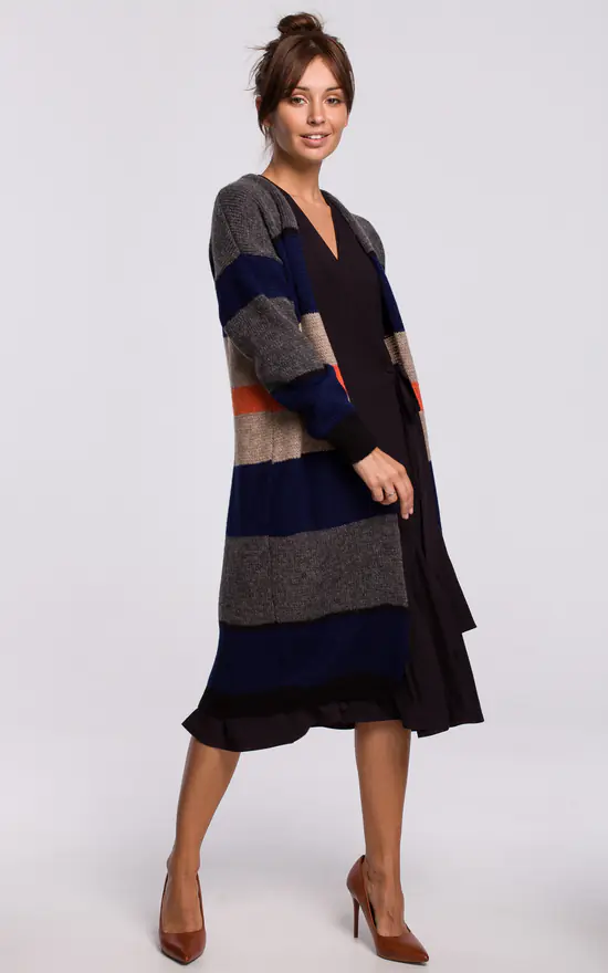 You will love the unique stripe pattern of this relaxed longline cardigan.