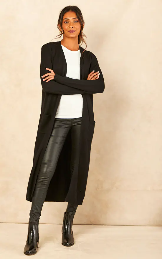 Cosy and chic, this black longline knitted cardigan is the versatile layer you’ll be living in for the foreseeable future.
