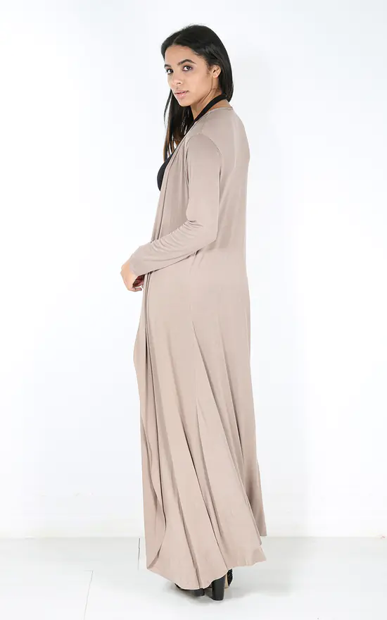 Niamh Open Front Waterfall Cardigan In Mocha ! Take your look to next level this season with our stylish maxi jacket. Featuring long sleeves and floaty hem, this cardigan looks great when worn over a casual daytime outfit!