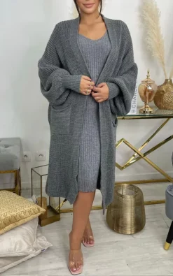 Brand new ⭐ Love Chunky Pleat Long Cardigan In Light Grey ????
