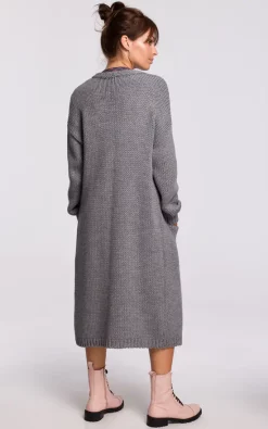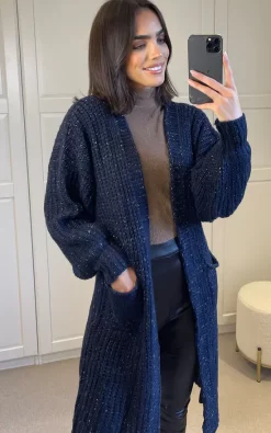 Cheapest ???? SIGNAGE Oversized Navy Lurex Knit Longline Cardigan With Pockets And Balloon Sleeves ✨