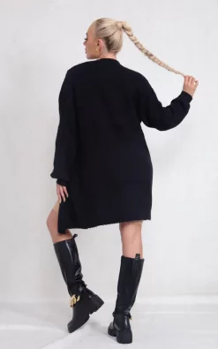 Best Pirce ???? De La Creme Fashions Black Balloon Sleeve Knitted Open Front Long Cardigan ????