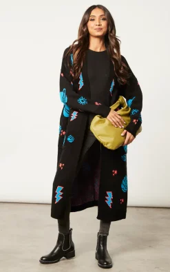 Top 10 ⌛ Liquorish Cosmic Pattern Open Front Cardigan In Black, Turquoise & Orange ????