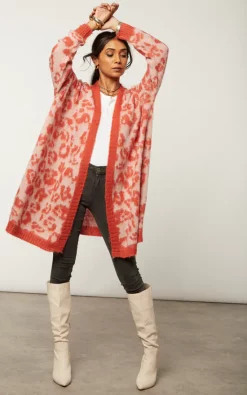 Best Pirce ???? Religion Longline Fame Cardigan In Burnt Orange Leopard Spot Jacquard ????