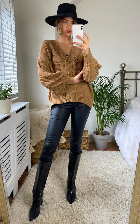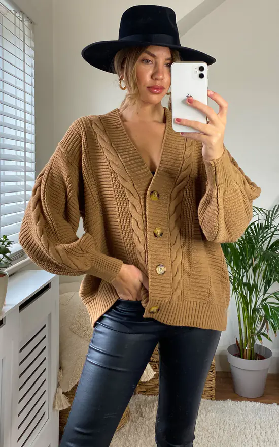 It’s all about the statement sleeves this season. Get cozy in the Urban Touch Cable Knit Over Size Cardigan. This cable knit cardigan features an open front, chunky statement sleeves, and an oversized construction. Cover up all your layers with this statement cardigan and stay toasty out there, babes.
