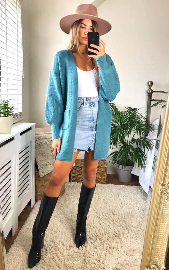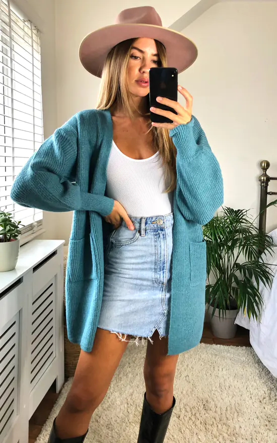 Featuring a relaxed cut that drapes to the knee, this Yumi Blue cardigan is cut in a longline shape. Designed with balloon sleeves cinched by ribbed cuffs, it’s elevated by pockets and soft-touch fabric.