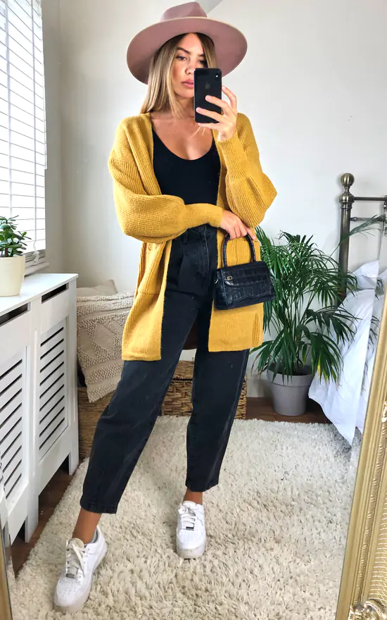 Featuring a relaxed cut that drapes to the knee, this Yumi Mustard cardigan is cut in a longline shape. Designed with balloon sleeves cinched by ribbed cuffs, it’s elevated by pockets and soft-touch fabric.